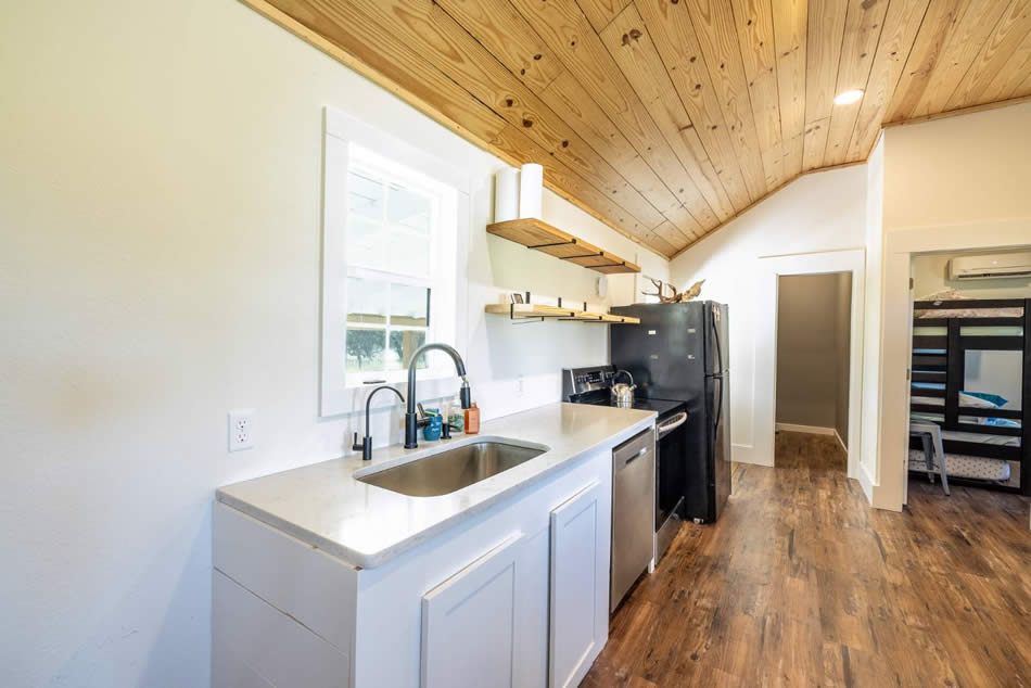 Nestled among majestic mature oak trees, this exceptional 13.25-acre ranch property in beautiful Goliad County, Texas, offers the ultimate blend of tranquility, functionality, and natural beauty. Whether you're seeking a serene weekend retreat or a permanent residence, this incredible property offers the perfect blend of natural beauty, comfort, and functionality as well as incredible views. Newly built home in 2023 with 800 Sgft, open living and kitchen offers 2 bedrooms, 2 bathrooms and a flex room. Hae a look at the expansive 600 sqft covered back porch perfect for relaxation, entertaining, and watching the wildlife. Additional property features: Ag- exemption in place, and the property is fenced and cross-fenced with woven wire for livestock or horse. Water lines from front to back and two electric drops for convenience. RV hookup for electric and septic an added bonus is the oversized aerobic septic system (a 3 to 4 bedroom home could be added to the existing septic system) Spray foam insulation in the floors, walls and ceiling for energy efficiency. Beautiful wood shiplap ceiling adds rustic charm, Mini-split air conditioning and propane tankless hot water heater for modern comfort. Reliable water well with spray foam insulated pump house and an additional storage building. This turnkey property will not last long! Don't miss this rare opportunity to own a piece of Texas paradise for only $339,000. *Furnishings