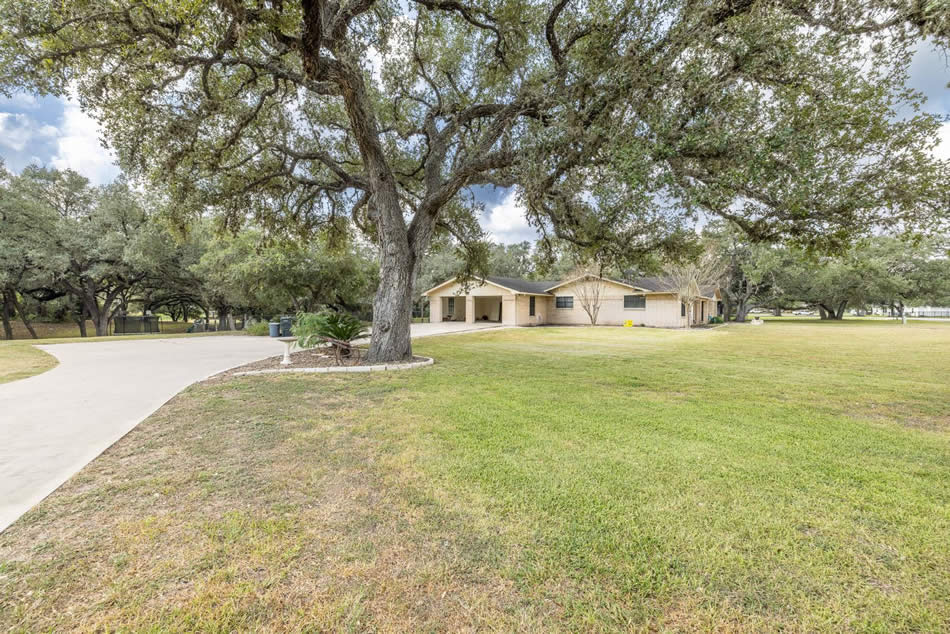 Gorgeous home on 1.91 acres covered in oaks! This is what country living is all about! Sitting on 1.91 oak covered acres in the highly desired Royal Oaks #1 subdivision. A spacious and inviting home with over 3000 square feet of living space, featuring a primary suite dreams are made of with massive walk-through closet, walk-in shower and soaking tub, 2.5 baths and two additional bedrooms as well as an office that would make a nice 4th bedroom, if needed. The open living concept with the, living room, eat-in kitchen and dining room are perfect for entertaining and have a look at the Texas wet bar! Custom-built-ins throughout the home and tons of storage. An oversized 1,000 sq ft 2 car garage with storage room/ laundry room. Serenity and wildlife await you just minutes from town. A huge added bonus is the wet weather creek in your own backyard. Give us a call today to see all this move in ready property has to offer for only $449,500.